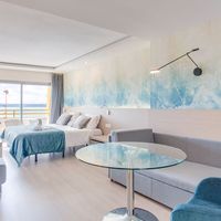 Las familias que reservan el Apartamento Superior Vista Mar disponen de una terraza amueblada con panorámicas del Mediterráneo y de la zona de agua del apartotel. Estas estancias son amplias y cuentan con dos camas individuales en el dormitorio más dos sofás convertibles en la sala. Además, tienen una cocina completa con vitrocerámica, microondas, cafetera, tostadora y hervidor. Otra opción es reservar una habitación familiar, que son dos dobles comunicadas entre sí y con espacio hasta para cuatro personas.